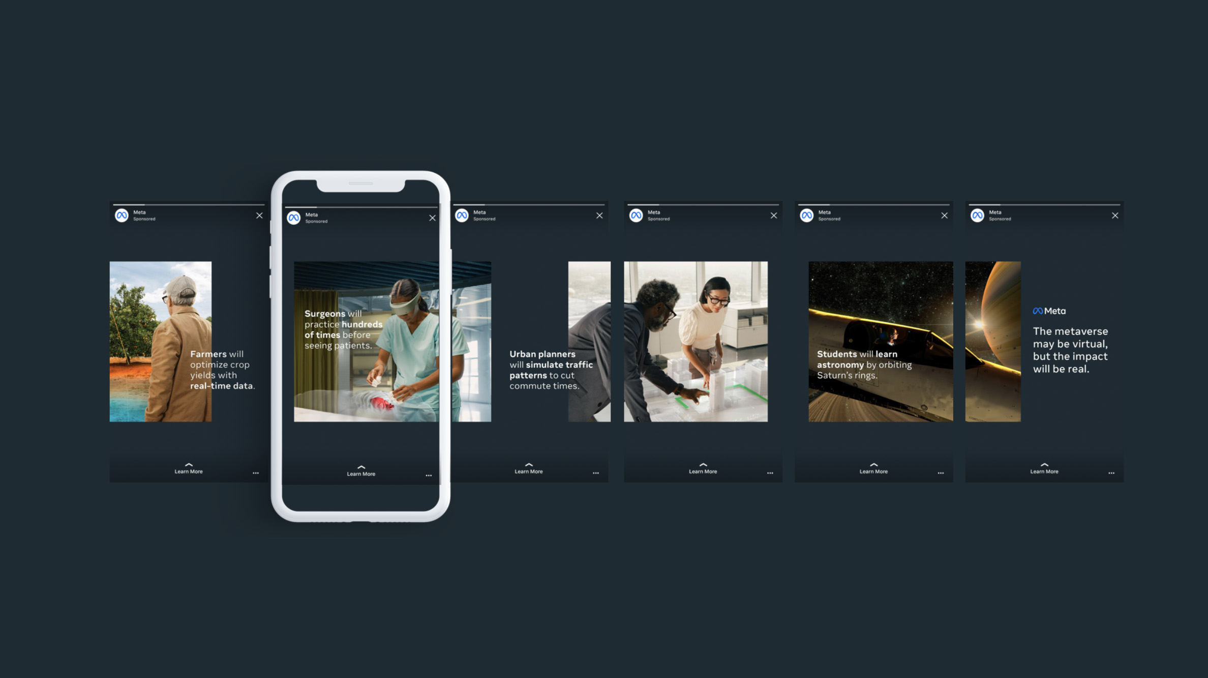 In 2022 Zuck bet big on the metaverse. Like, change the name of ‘Facebook’ to ‘Meta’, big. With the public and Wall Street wondering why his avatar looked like a legless Lego after 26 billion dollars was spent, we were briefed to help quickly set the record straight. Working with futurist David Slade (Black Mirror), our team developed a design system and art direction across all platforms to provide clarity and feeling to what Meta's vision for the near future was. With yes, legs.