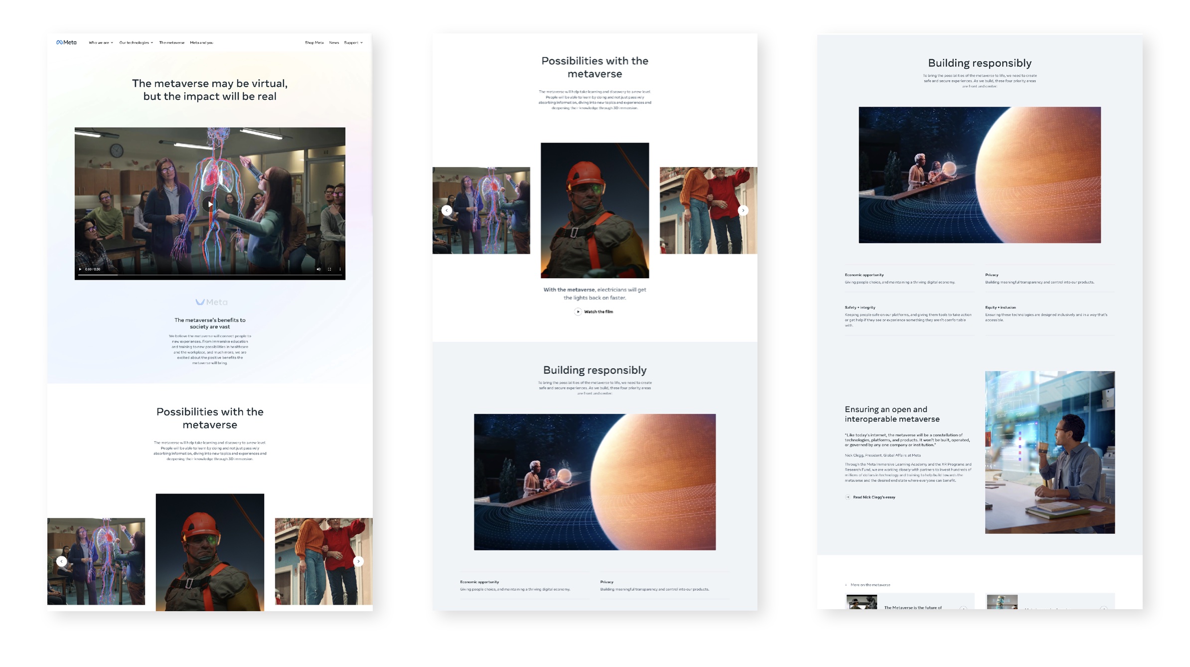 In 2022 Zuck bet big on the metaverse. Like, change the name of ‘Facebook’ to ‘Meta’, big. With the public and Wall Street wondering why his avatar looked like a legless Lego after 26 billion dollars was spent, we were briefed to help quickly set the record straight. Working with futurist David Slade (Black Mirror), our team developed a design system and art direction across all platforms to provide clarity and feeling to what Meta's vision for the near future was. With yes, legs.